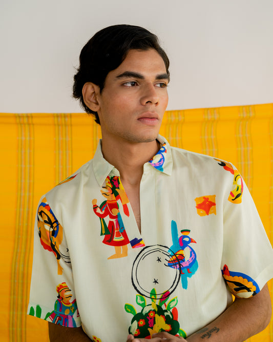 Our clothes begin as stories—from temples, courtyards, painters and grandmothers. We reinterpret traditional narrative textiles into playful, wearable pieces that carry the soul of Indian folklore.