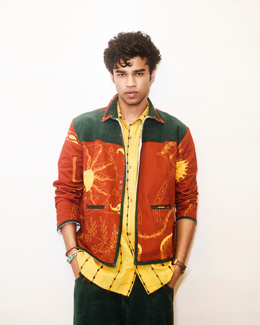 Our clothes begin as stories—from temples, courtyards, painters and grandmothers. We reinterpret traditional narrative textiles into playful, wearable pieces that carry the soul of Indian folklore.