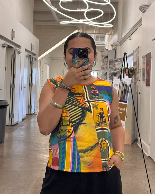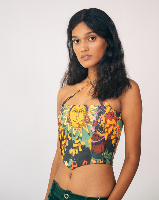 Our clothes begin as stories—from temples, courtyards, painters and grandmothers. We reinterpret traditional narrative textiles into playful, wearable pieces that carry the soul of Indian folklore.