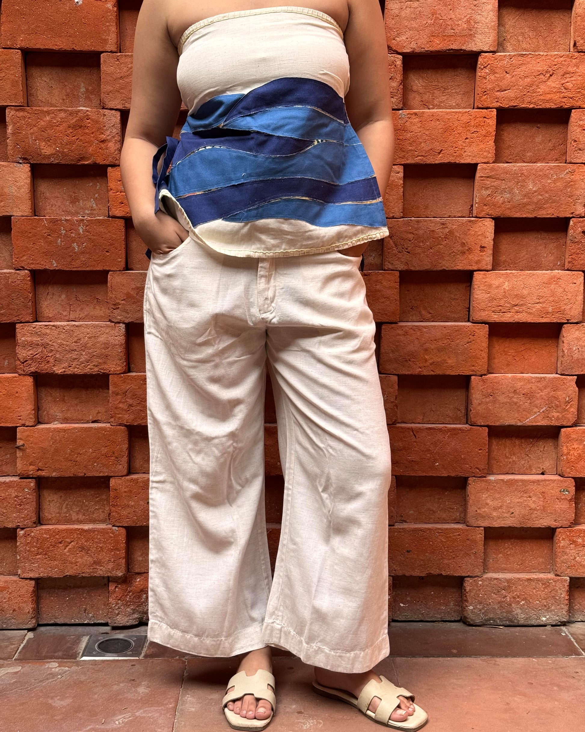 Patched with upcycled post-production waste. This piece exudes an eclectic appeal. With its body-hugging fit and elastic at the back for better comfort, this top effortlessly combines style and ease.